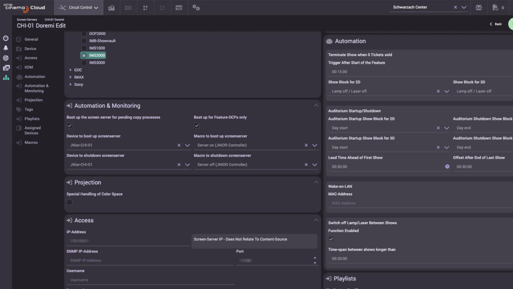 Content delivery integration. The content supplier Sharc (CinePostproduction) in Germany and Diagonal in Switzerland is directly integrated into the TMS. The delivery is carried out directly via the OneCinema server and no extra hardware from the content supplier is required.